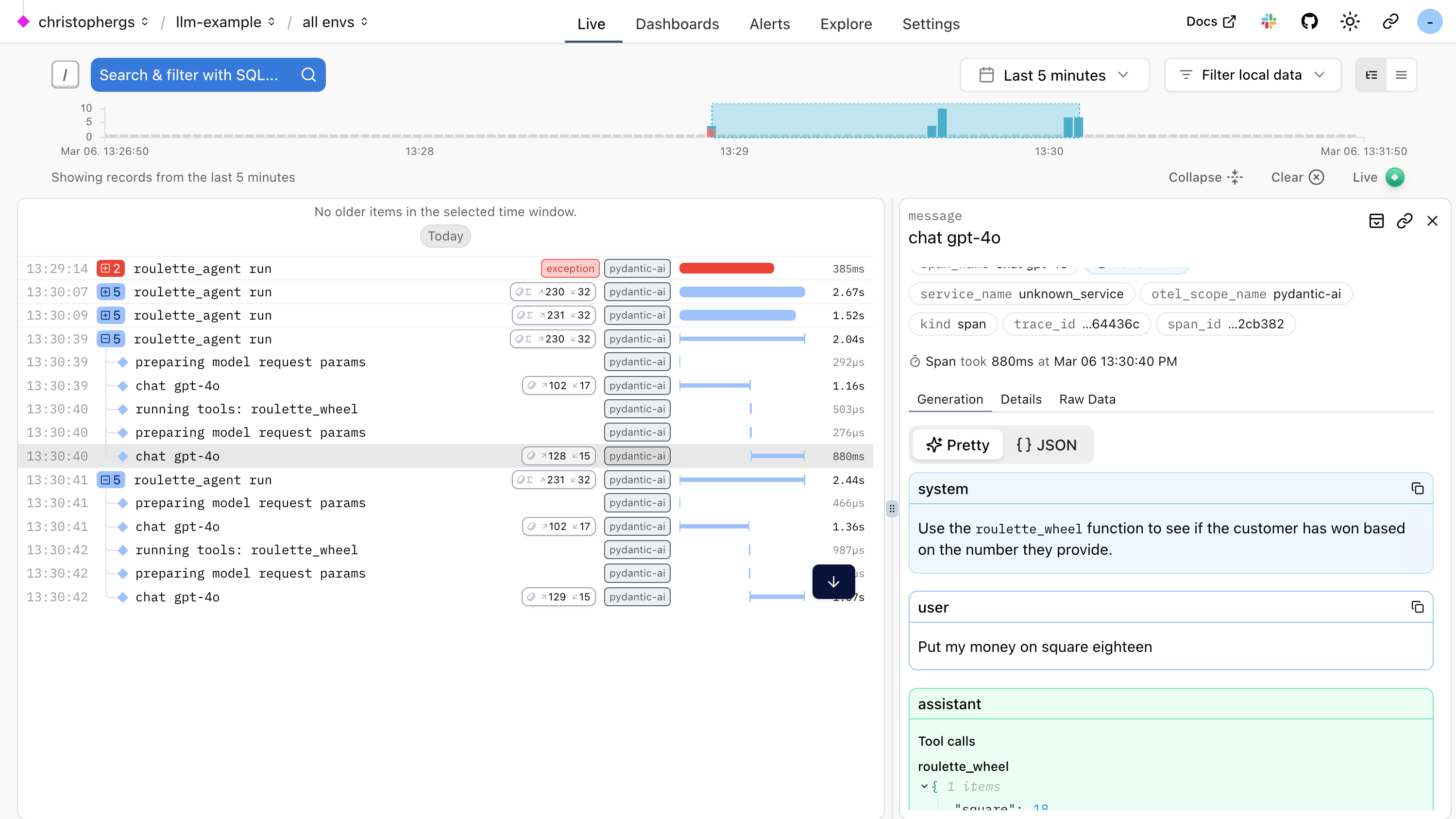 reference or the PydanticAI docs on instrumenting with Logfire.